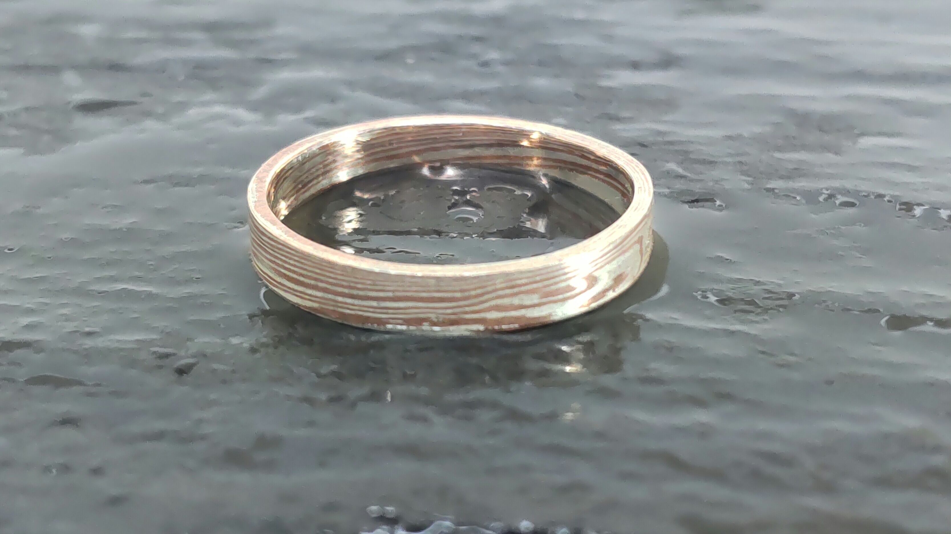 杢目金の杢目模様は、加工上一つとして同じ物ができないので、